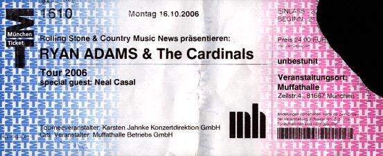 Autogramm von Ryan Adams & The Cardinals (Ryan Adams, Neal Casal, Jon Graboff, Chris Feinstein und Brad Pemberton) - gesammelt am Montag, den 16.10.2006 vor und nach der Show in der Muffathalle/Muenchen??