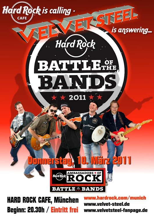 Velvet STEEL sind mit dabei beim BATTLE OF THE BANDS 2011 und haben die Chance im Vorprogramm von Bon Jovi zu spielen!
