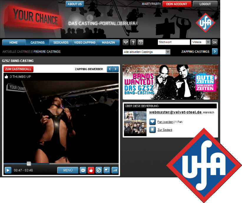 29.10.2009 // Velvet STEEL bei GZSZ im Casting Portal der UFA! Macht mit und meldet Euch an und Votet für uns! THUMBS UP!