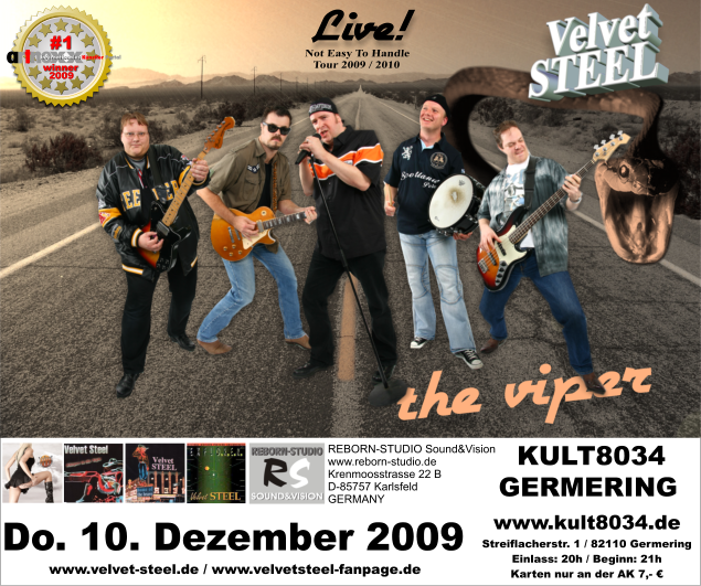 06.11.2009 // Velvet STEEL LIVE! Die "Not Easy To Handle Tour 2009/2010" geht weiter und macht am Donnerstag den 10. Dezember 2009 in Germering halt! Wir spielen im Kult8034!